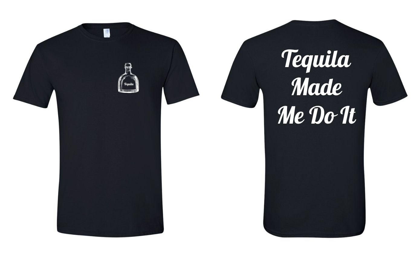 This tee keeps it real with “Tequila Made Me Do It” printed across the back, and a clean, pocket-sized tequila bottle graphic on the front. It’s made for late nights, early brunches, and stories you’re only half sure are true.